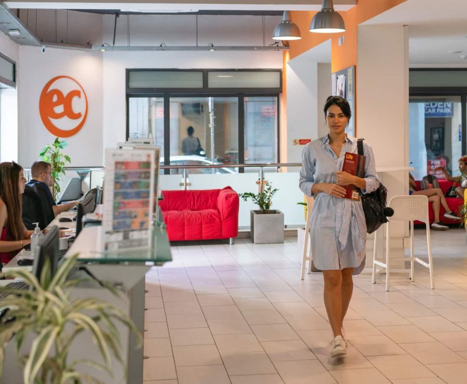 EC 於 1991 年在馬爾他創立,最初是一所小型的家族經營語言學校,現今已成為全球知名的連鎖教育機構,目前在英國、美國、加拿大、馬爾他、愛爾蘭及南非等 6 個國家共設有 20 多所校區。大多數校區位於市中心,交通便利、生活機能完善。每間學校以鮮明的橘色 Logo 搭配白色背景,營造出明亮、活潑的氛圍,讓人一走進學校就感受到充滿能量的學習環境。