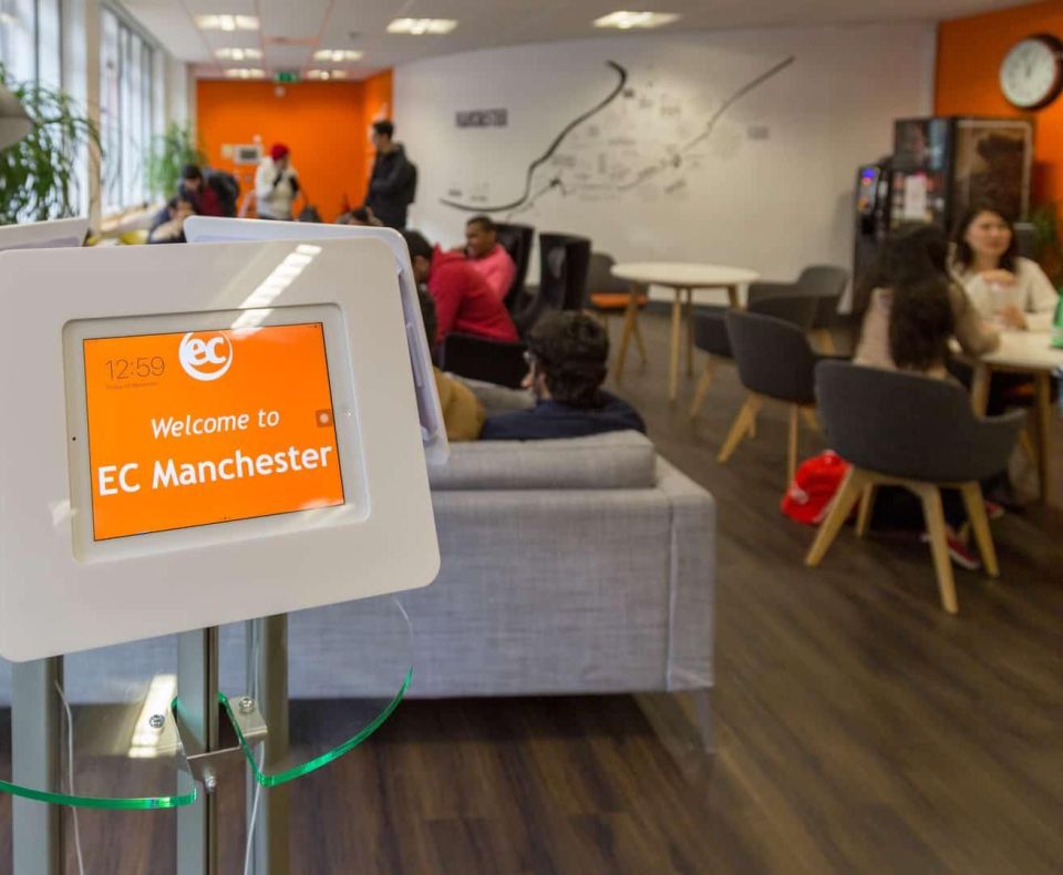 EC 於 1991 年在馬爾他創立,最初是一所小型的家族經營語言學校,現今已成為全球知名的連鎖教育機構,目前在英國、美國、加拿大、馬爾他、愛爾蘭及南非等 6 個國家共設有 20 多所校區。大多數校區位於市中心,交通便利、生活機能完善。每間學校以鮮明的橘色 Logo 搭配白色背景,營造出明亮、活潑的氛圍,讓人一走進學校就感受到充滿能量的學習環境。