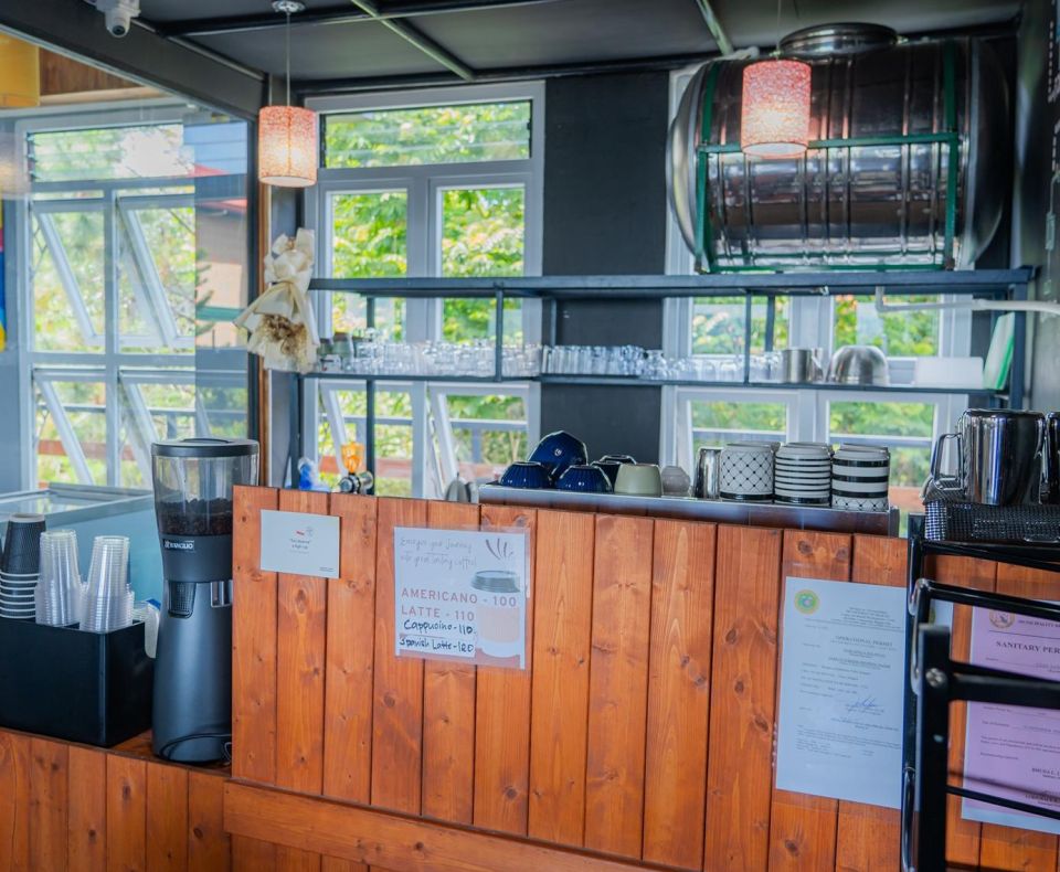 校內咖啡廳實作,內容涵蓋咖啡知識、烘焙與萃取、顧客服務與菜單準備。