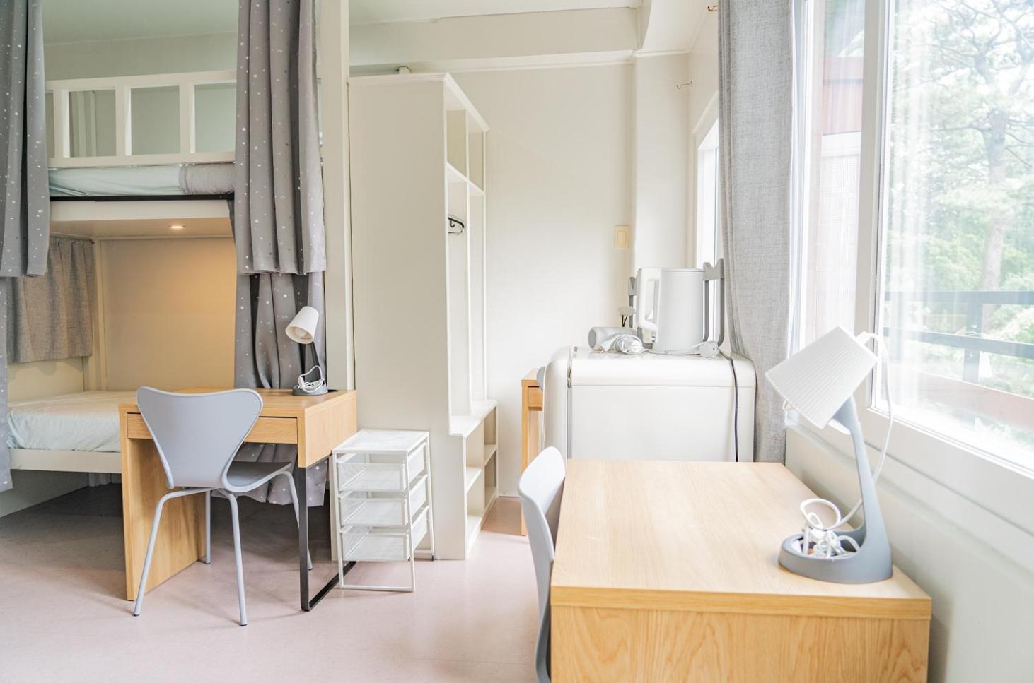 5. 床型為上下舖,下:雙人床,上:單人床(一個人睡)