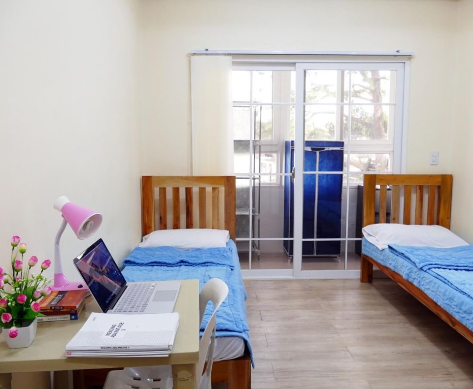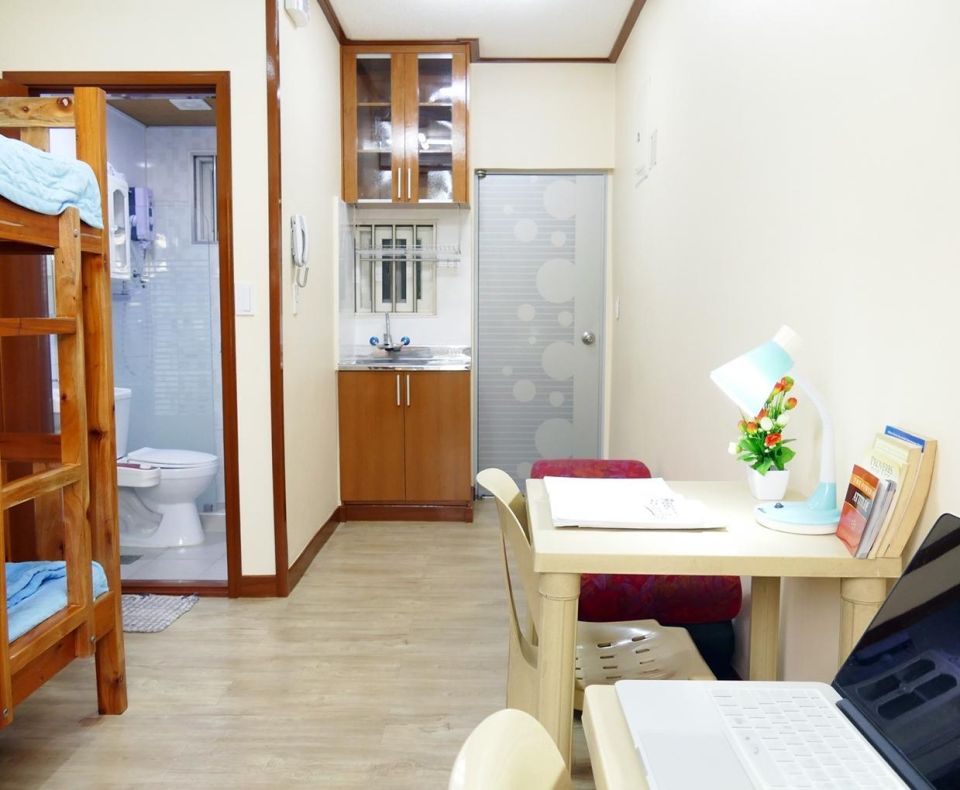 此房型為一房、一衛、一廳,雙人房,學校可協助安排另一位同性別同學。此房型一般適合單人或是雙人入住,若是家庭共同前來的話,可再加一小床,最多3人入住。