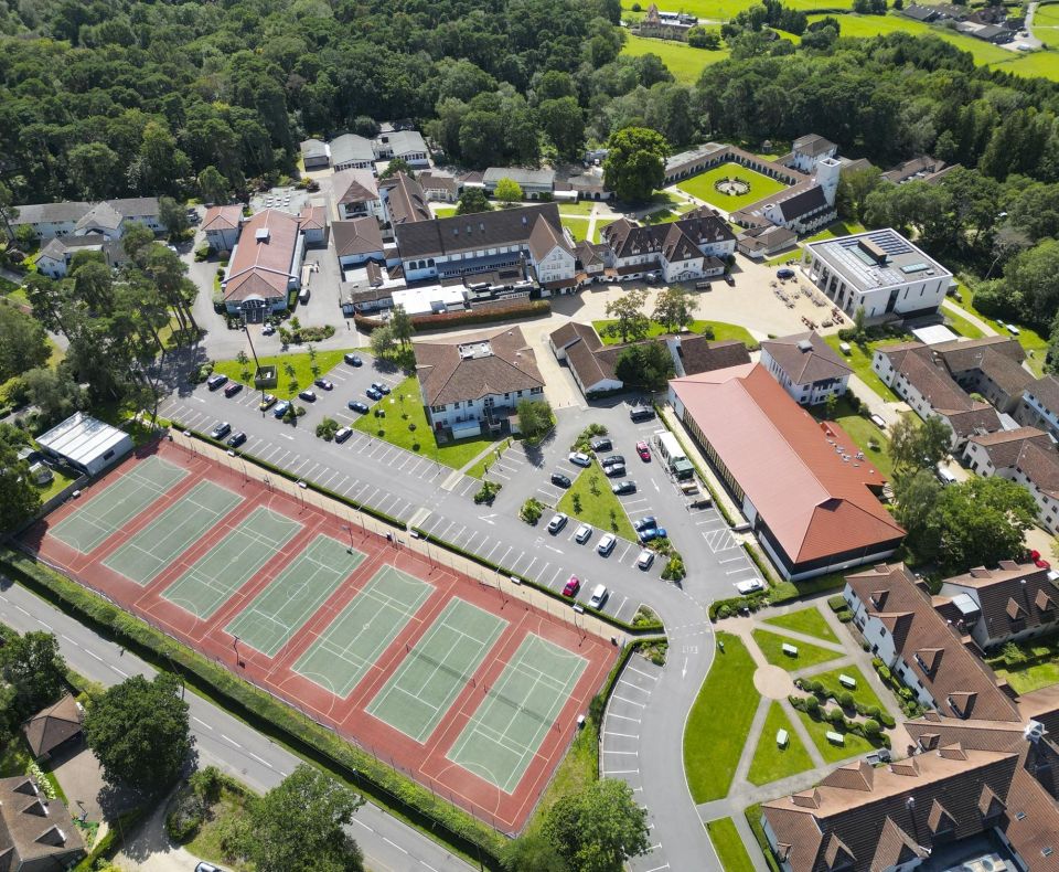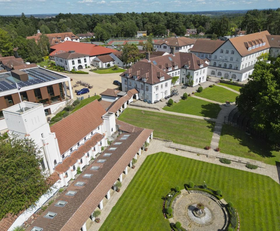 Downe House School 位於英格蘭伯克郡(Berkshire)的 Cold Ash,距離希思羅機場僅約 45 分鐘車程,距倫敦市中心約 1.5 小時,地理位置優越,環境優美且安全。這所創立於 1907 年的傳統女子寄宿學校,以卓越的學術成就和全面發展的教育理念聞名,致力於幫助學生在學術、藝術、運動及社交等各方面取得平衡,充分發揮潛力。